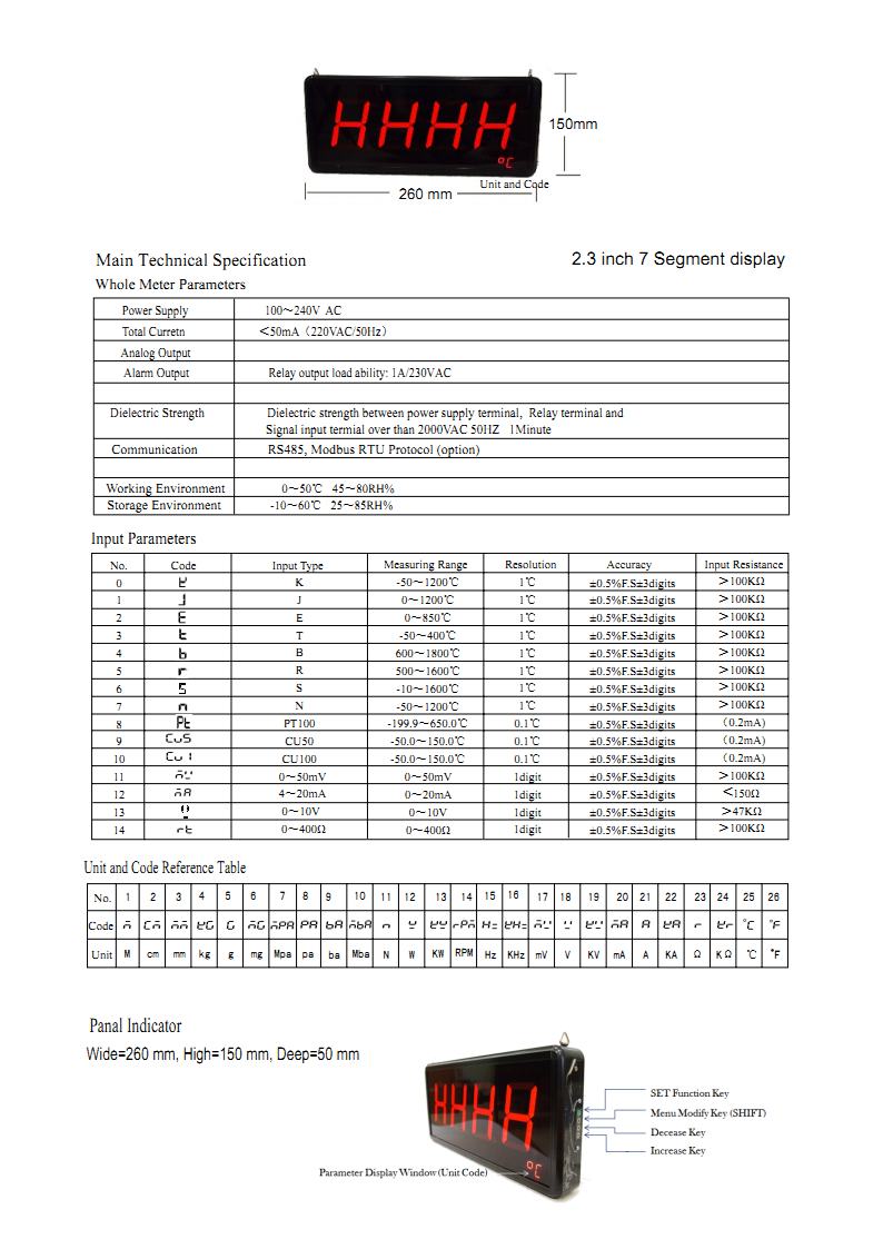 | SBD-01-2.3 | (7-Segment 2.3") | size: W260xH150xD50mm. |